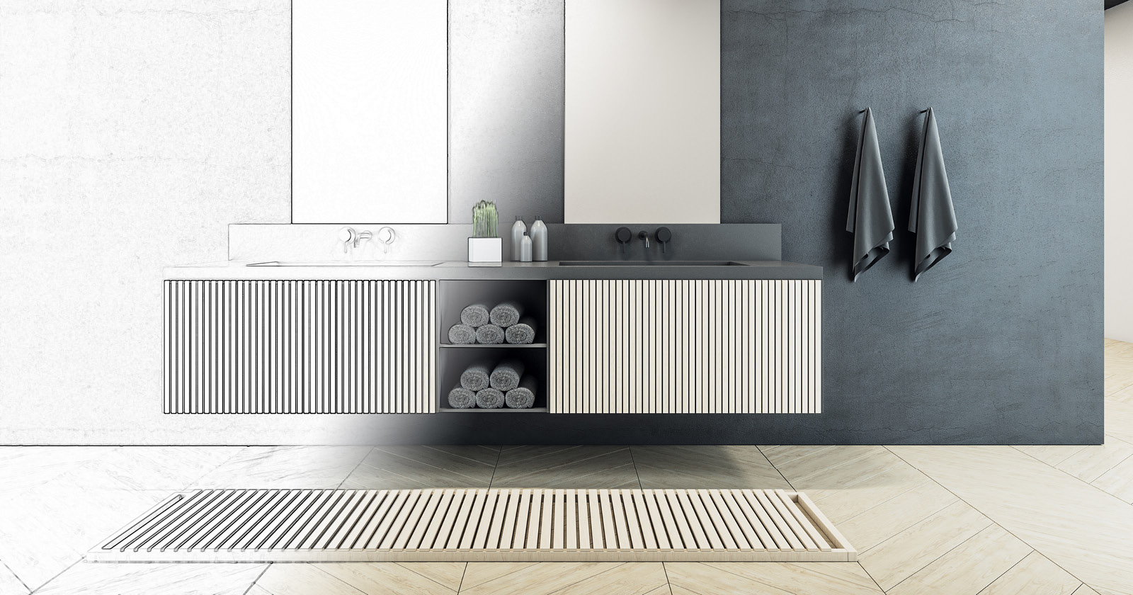 La scelta più comune è quella di optare per mobili bagno con frontali cannettati. Oltre alle classiche basi sospese, pensili e colonne, puoi optare per: