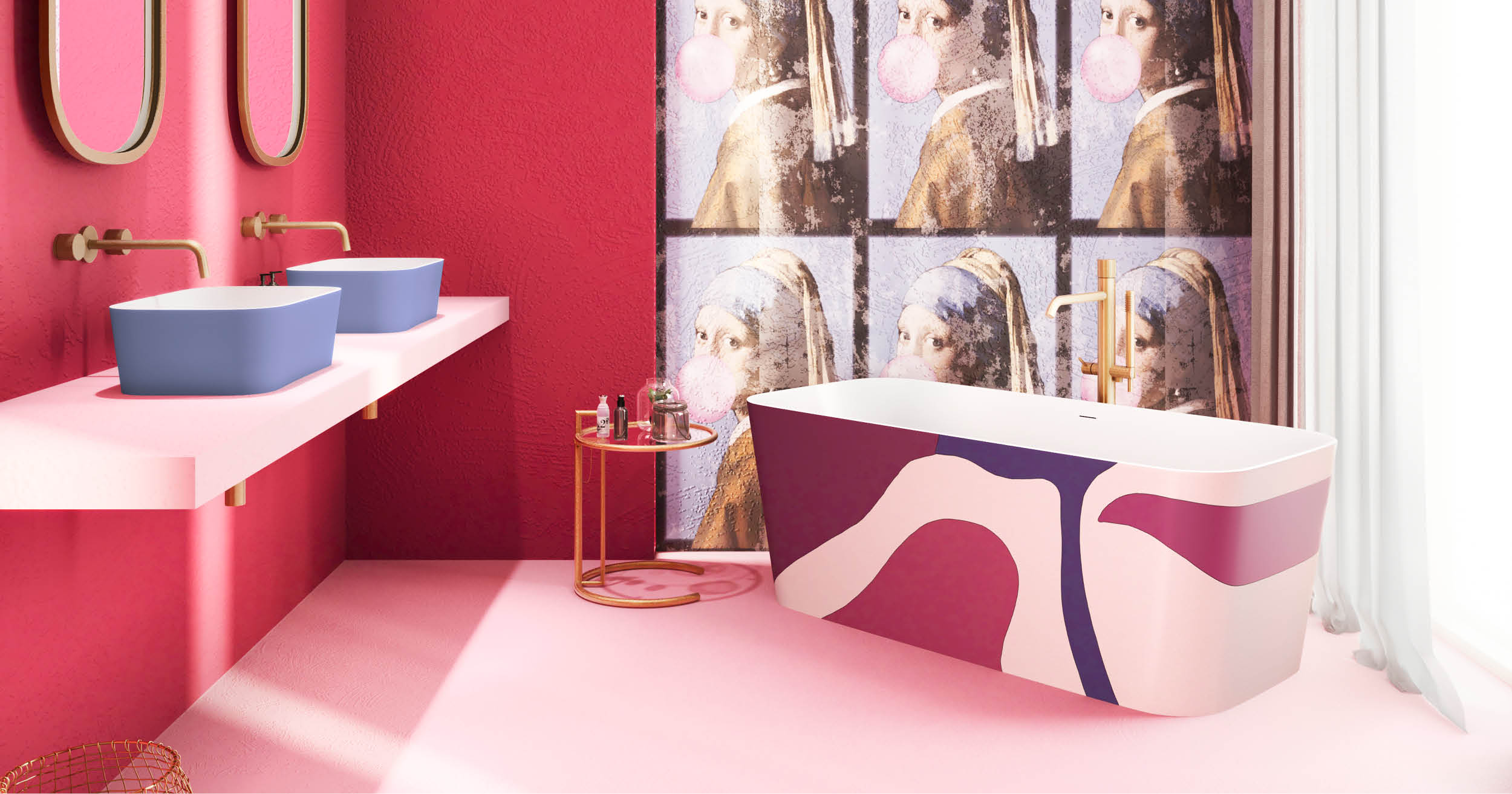 I sanitari, così come la vasca o doccia in stile pop art, scelti in versione morbida e super glossy con colori come il nero o il rosso, andranno mischiati ai decori geometrici o floreali, purché nelle tonalità chiare tipiche del vintage.